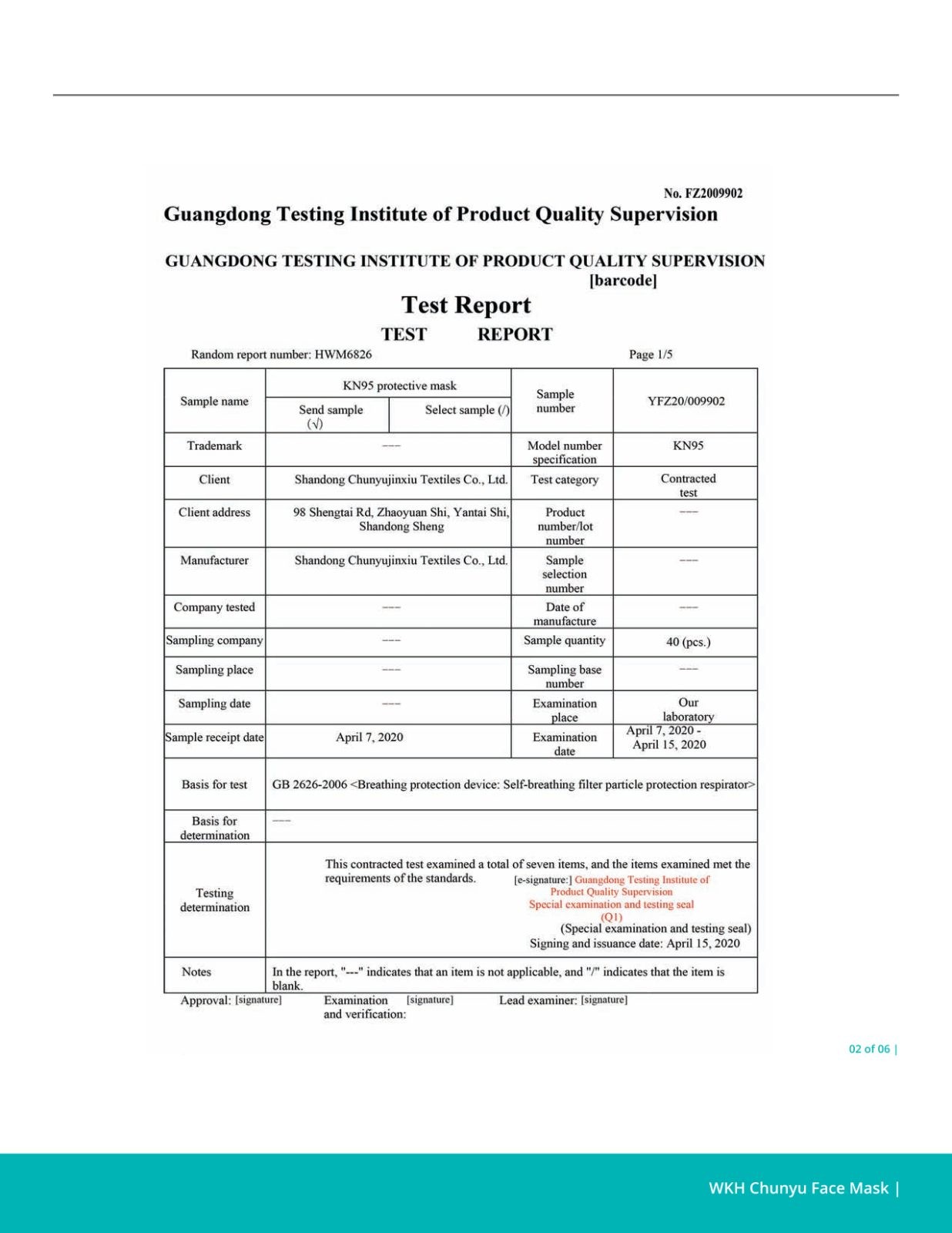 • Standards: AAMI PB70 – AATCC 42