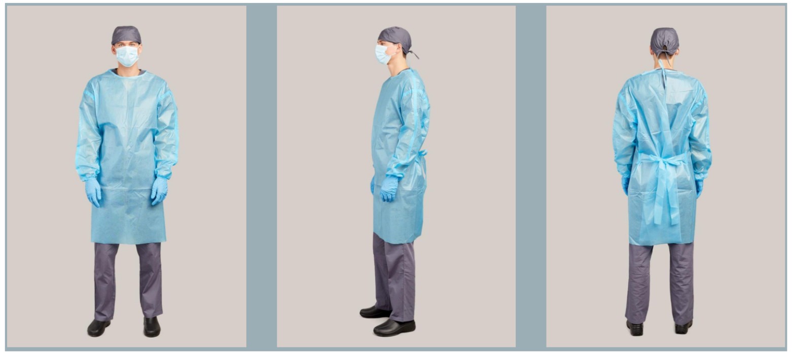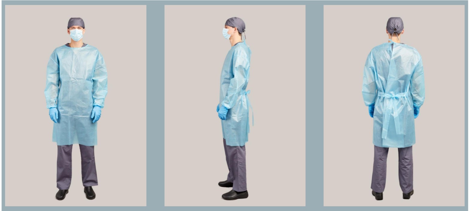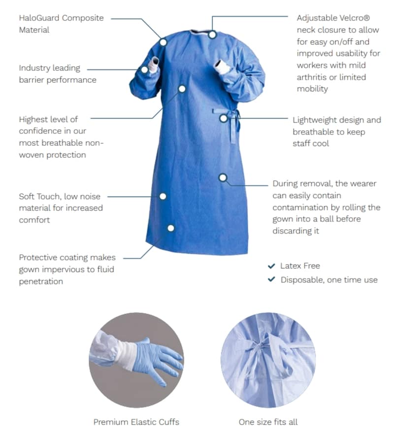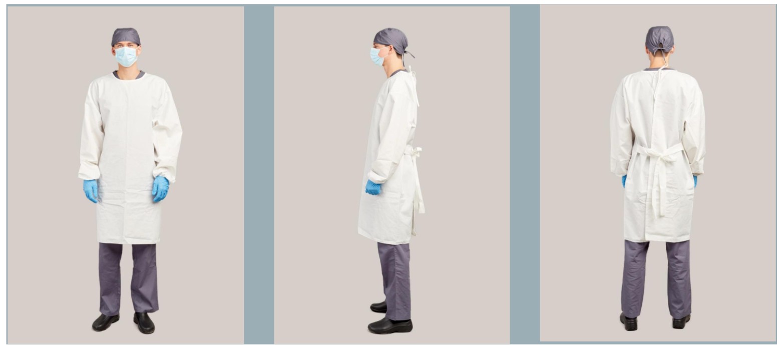 PROCEDURE GOWNS were designed to meet the specific protection and comfort requirements for endoscopic and other medical procedures. Level 4 Procedure Gown is made of Halo Guard, a composite breathable laminate, which was developed for the rigorous standards of AAMI IV material requirements per ASTM F1670 (Synthetic Blood Test) and ASTMF1671 (Bacteriophage Test).